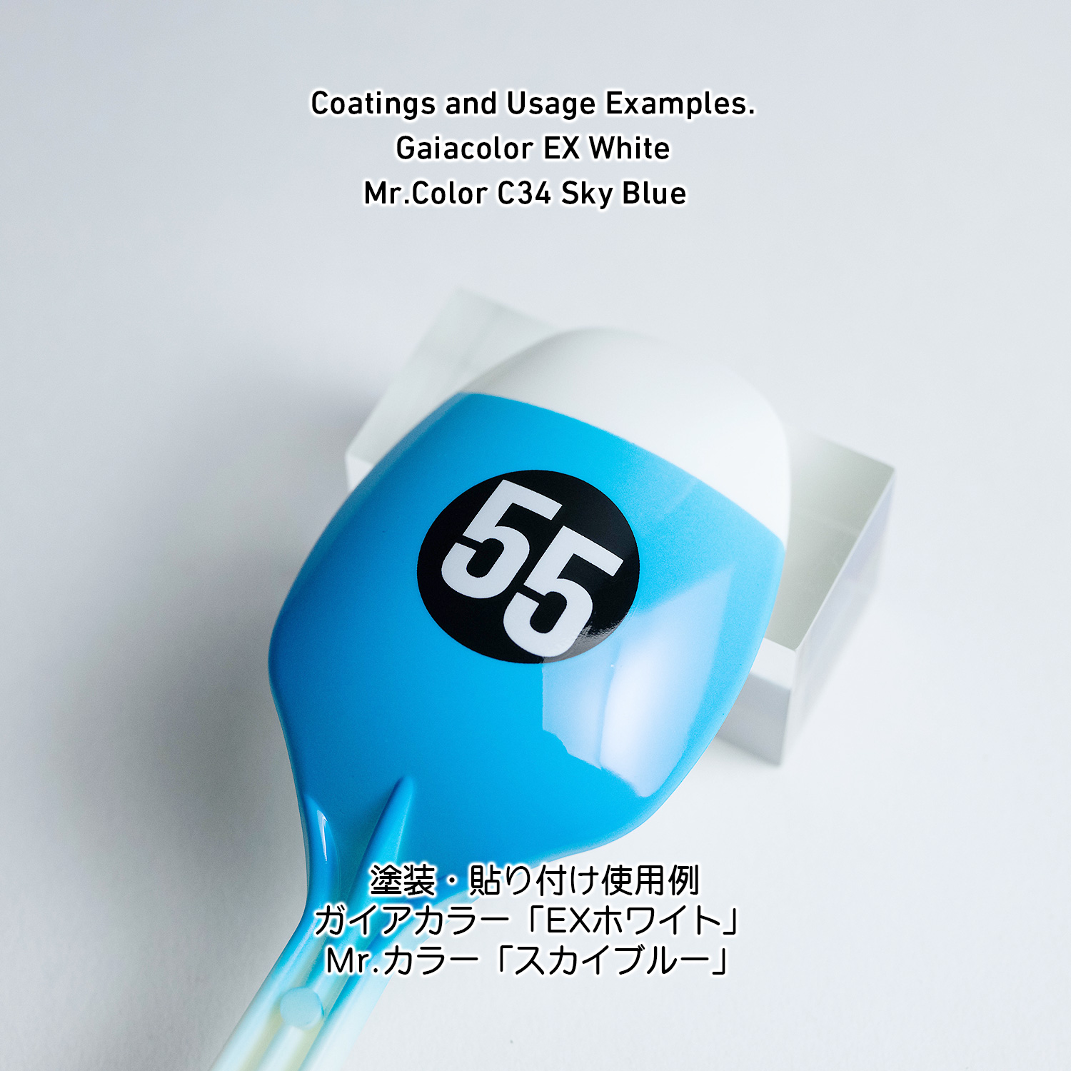 ベースブラックのデカールでは、四角または丸の形の黒いベースデカールの上に、白い数字のデカールを貼り付けて使います。